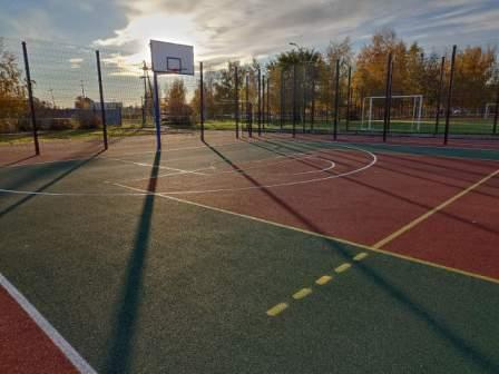 На территории школы оборудована современная футбольная площадка. Две универсальные баскетбольно-волейбольные площадки и 200 метровая беговая дорожка с резиновым покрытием.