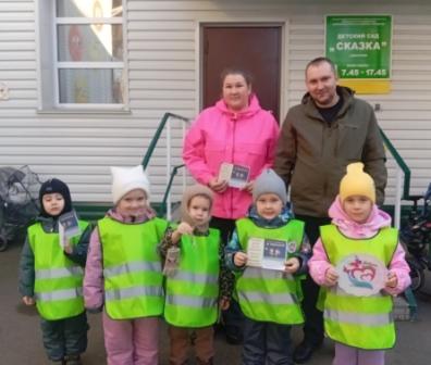 Маленькие волонтёры обращались к взрослым, которые спешили за своими детьми в детский сад и напоминали о важности использования световозвращающих элементов в тёмное время суток. Ребята раздали яркие памятки, в которых подробно рассказывается для чего нужны световозвращающие элементы, как их правильно носить, чтобы быть заметным на дороге.