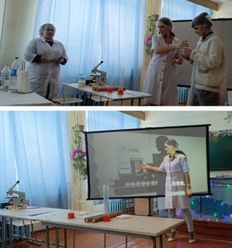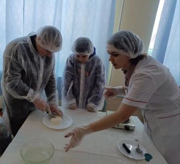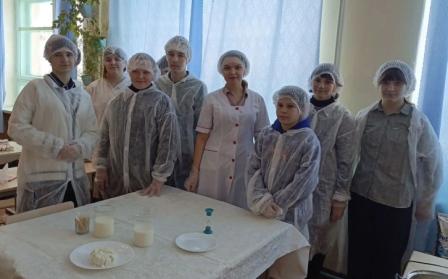 с представителям Алтайского государственного аграрного университета, Зуевой Е.М. и лаборантом Кудрявцевой А.А. В ходе лабораторной работы ребята измеряли температуру и плотность молока при помощи прибора ариометр. Во время работы юные агрономы приготовили сыр и продегустировали его.